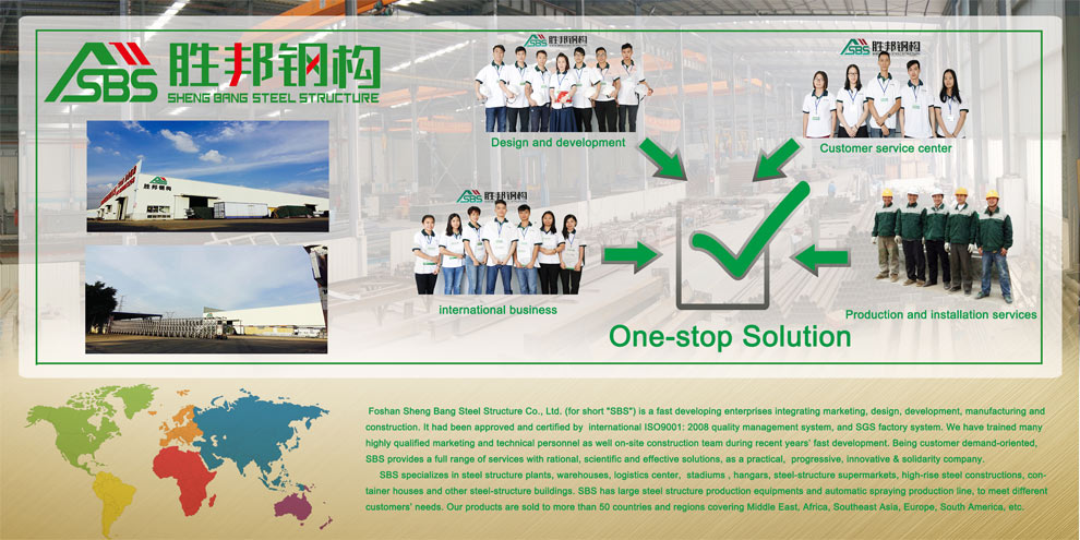 佛山市勝邦鋼結構有限公司(簡稱“勝邦鋼構”m.hengfeng-tools.com)是一家集合營銷、設計、研發、制造、施工為一體,專業承建鋼結構建筑的發展型企業。并通過國際ISO9001:2008質量管理體系認證和SGS工廠體系認證。近年的飛快發展,培養了一大批高素質營銷、技術人才和現場施工隊伍,勝邦以客戶需求為導向,為客戶提供合理的、科學的、有效的解決方案,以務實進取、不斷創新、團結一致的精神為客戶提供全方位的服務。